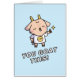 A greeting card with a doodle of a cute goat in a white tee of a yellow smiling face. The goat shows a thumbs up of approval or rather a hoof up. The positive encouraging message reads "You Goat This!"