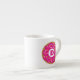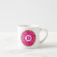 Cute espresso cup mug with pink glazed doughnut logo. Add your own personalized name initial. Funny little mug for men and women. Cool Birthday or Christmas gift idea for him or her. Make one for friends, family, co worker, colleague, boss, coffee lover, mom, dad, employee, teacher, coach etc. Customizable colours. Handy for home or office. Double sided print.