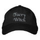 A cute modern witches hat embroidered in lavender purple on a black baseball cap with the text Faery Witch. This magical fairy witches hat can be personalised to a name or other text. A cool witchy gift idea for the enchanted witch.