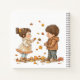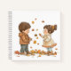 Charming watercolor illustration of children enjoying playful moments in the fall, beautifully captured on a beautiful spiral notebook. A perfect addition to your children's stationary.