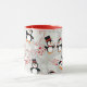 Drink your morning coffee in this adorable Christmas penguin themed mug! This black and white and red penguin mug features a repeating pattern of cute penguins wearing top hats, red bow ties, and red bows, as well as candy canes and snowflakes. This is a great winter coffee mug and makes for a wonderful gift for penguin fans or lovers. Adorable and modern penguin mug makes a great penguin gift for kids, co workers, family members, and friends!