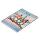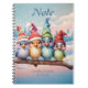 Cute fantasy birds with Christmas hats.The birds are vibrantly coloured, have big eyes that exude joy and curiosity. The background features a soft winter sky in pastel colours, streaked with delicate snowflakes slowly falling. The design exudes warmth and joy, perfectly capturing the festive spirit of the holiday season.