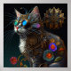 Cute fantasy steampunk cat wearing glasses, and colourful flowers. For all cat lovers.