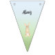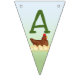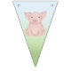 Welcome your guests to a baby shower with this cute bunting featuring a donkey, a goose, a hen and her chicks, a baby goat, a piglet, a rabbit, two lambs, a border collie, a black cat and a cow and her calf.