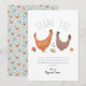 This cute and trendy baby shower thank you card design features a chicken illustration, with a matching blue farm pattern on the back, with flowers, chicks, and eggs. The thank you card can be personalized with the parent's (or child's) names. The perfect gender neutral farm themed addition to your co-ed couples baby shower.