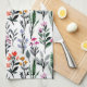 Cute feminine floral design pattern Foliage white Kitchen Towel