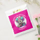 Cute personalized birthday party chocolate favour bags to say thank you to guests for coming. Adorable with a cute cartoon ferret with birthday hat, gift and balloons in pink, teal and purple colours.