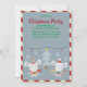 This festive Christmas party invitation features an cute winter woodland theme. An image of a two little mice are pictured standing next to a Christmas tree, beneath colourful lights and snowflakes. The border features a red and white striped peppermint candy cane pattern.