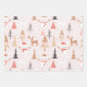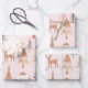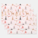 Cute Festive Pink Christmas Tree Snowman Reindeer Wrapping Paper Sheet