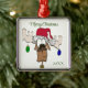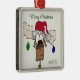 This cute ornament features a colorful reindeer dressed in Santa's hat with green and blue metallic ornaments hanging from his antlers. Personalize this adorable ornament by adding your text, or delete it to leave it blank. The design is based on an original art piece by © One Artsy Momma.