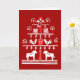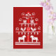 Hand-drawn illustration featuring Scandinavian folk art with a Christmas tree decorated with candles, birds, branches, houses, angel with trumpet on top, and dala horses in white and red tones, with custom message inside
