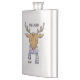 The product is a good size and came exactly as it was pictured.  The lid is not attached to the flask, which could be dangerous on drunken nights... The print came out surprisingly well and looks very sharp.  Would definitely recommend.