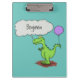 Cute fire breathing green funny dragon cartoon clipboard