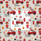Firefighters pattern with various fire trucks, fire engine and girl and boy fire fighters