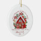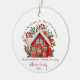 A circular enemal Christmas tree holiday ornament to celebrate the first Christmas in a new home. On the front side is a cute little red house and a place to personalize the house's street number on its door. Fantasy Christmas flora and candy canes surround the house. Add a new address and the family's name and year in a trendy modern script typeface. On the reverse side, add a family photo of your choice. Personalize all using the template fields provided. Message me if you need assistance with sizing. Great keepsake gift for new home owners!