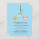 A cute and amusing fishing baby shower invitation that is going to put a smile on your guests faces. It comes with a fishing line that has a baby pacifier on the hook as bait for the fishes which includes a clown fish. On the reverse page is a spiral pattern to simulate the water waves. Personalize with your baby shower details.