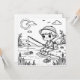 A cute little boy fishing in a lake on a camping trip colouring page. Colour me card for kids!