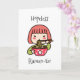 Hopeless Ramen-tic. Cute graphics of red head Japanese girl eating Ramen noodles with chopsticks. Cute flirty card for Valentine's Day or an Anniversary or any romantic occasion.