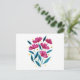 A cute and simple watercolor illustration of a cute floral bouquet in magenta, teal, and yellow.
