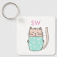 Cute cat illustrated keychain. Customize with your initials/monogram or your choice of text. Matching items available. Artwork from artists own illustrations. Please contact me for customization and special requests. © Zoe Chapman Design