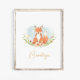 Cute Floral Fox Animal Nursery Name Wall Arts Poster