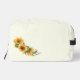 Boho chic modern elegant floral monogrammed initial name unique personalized cosmetic bag with a pretty watercolor bright yellow burnt orange sunflower and sage green greenery bouquet. ++++++++++ A cute keepsake gift for her: girl, bride, bridesmaid, mother, daughter, sister, or best friend on a birthday, anniversary, Christmas, bridal shower, or graduation.