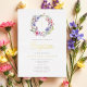 Elegant Floral Wreath Religious Girl Baptism Gold Foil Invitation.
