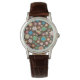 I like the illustrative watch with the lady on it. It is a great reminder that I am blessed and it  has a very sturdy leather band. The colors are true and vibrant. Love the color of the Leather also. Very nice.
