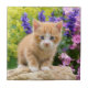 A lovely kitten on a rock in a flowery garden. A cute young redtabby baby cat with wonderful blue eyes, photo taken by Katho Menden. This ceramic square tile is a gift idea for cat and pet lovers. http://www.zazzle.com/kathom_photo