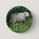 Ce bouton mignon comporte une photo d'un mignon mouton moelleux. Le mouton est entouré de fleurs sauvages et d'herbe longue et mange quelques feuilles. Il a une épaisse couche blanche de laine et un mignon nez noir.