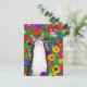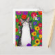 Cute Folk Art Cat saying Hi among Flowers Postcard