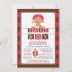 Modern football baby shower invitation featuring a cute African American baby boy wearing a diaper and helmet with a football set on a brown & red stripe background with an football accent and pendant banners. Flip our sports boys baby shower invite over to view a matching back for an extra special touch. Perfect for a all sports theme baby boy shower.