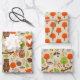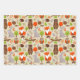 This forest set of gift wrapping paper is designed in red, green, brown, orange, beige and white colours. This woodland set of wrapping paper is with brown bear, red fox, cute owl, hedgehog, snail, mushroom, red berries and forest leaves.