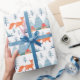 Cute Fox and Mountains Pattern Illustration Wrapping Paper