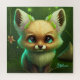 Cute Fox And Orange Flower Green Jigsaw Puzzle