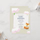 Delight your guests with this adorable woodland-themed baby shower invitation, featuring a sweet fox sitting beneath soft pink clouds. The minimalist design with a playful touch is perfect for nature-loving parents-to-be or anyone planning a forest animal baby shower.