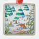 The original little fox and bunny painting on this Christmas tree decoration is titled "Behind You!." The subject of the illustration is a little red fox, he’s smartly dressed in his red and yellow knitted woolly scarf to keep warm from the cold winter snow while he digs for rabbits, but! little does the fox know that while he’s toiling away the cute bunnies, who are also warmly dressed in little green and yellow and red and green knitted hats and scarves, are giggling behind him as they watch Mr. fox getting exhausted while digs for bunny rabbits in the freshly fallen winter snow. So, all the little bunnies are safe from the fox because if he does look around to see the rabbits he’ll be too worn out to even think about chasing them. I like to think that the rabbits made friends with the fox and they all played snow balls together. All the cute characters in this original snow scene illustration are created from my own imagination, I think they look very festive on this great christmas ornament. On the back of the ornament the image of this cute illustration have been digitally enhanced to give it an original effect. On the back of the ornament is the original watercolor fox and rabbit picture. thi is a customizable tree decoration, you can personalize this christmas ornament by adding your own text. The original illustration for this cute wildlife in the snow image, titled "Behind You!" is painted in watercolor pencil. Happy Christmas!