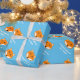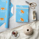 Cute fox Birthday wrapping paper for kids. Personalized blue animal wrappingpaper. Cute design with cartoon foxy and congratulatory text. Funny giftwrap for boys and girls. Personalizable with custom name and wishes. Background colour is customizable. Fun DIY wrapping supplies and packaging supplies for baby shower, 1st Birthday etc.