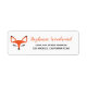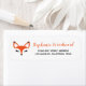 This return address label features a cute orange and black fox face with long eyelashes. Personalize it with your name in matching orange handwriting script and your address in black sans serif font. Coordinates with our woodland-themed fox face baby shower collection.