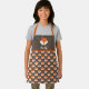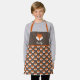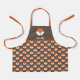 An apron with a pattern of illustrated fox faces on a brown background. It also includes darker orange accents and a customizable name.