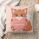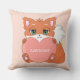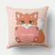 Cute baby fox with heart on light coral pink Pillow. Text can be personalized.