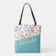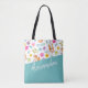 Cute Fox Pattern Teal Personalized tote bag from Ricaso (also available in different colours in store) - the pattern on this bag features a red fox dancing among colourful flowers