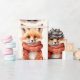 Wrapping paper with an illustration of a reddish orange fox pup. A subtle smile on his face. Wearing a nice red scarf for warmth.