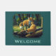 Cute Fox Pups Playing Forest Green Doormat