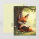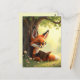 Cute fox wearing glasses lies comfortably beneath a tree in the forest, reading a book. Cute, custom postcard..
