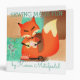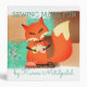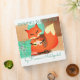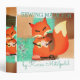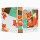 Cute, adorable fox seamstress with sewing notions, spools of thread, scissors, pincushion and faux fabric patches background on this pattern binder or crafts binder.