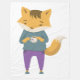 Cute fox with cup of tea fleece blanket