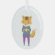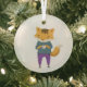 Cute fox with cup of tea glass ornament