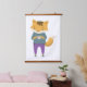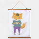 Cute fox with cup of tea hanging tapestry