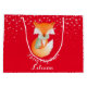 Personalize this cute large gift bag fox cub wrapped up warm on a red starry background. Customize this fox art seasonal festive gift bag with your name and greeting choice. Currently reads Merry Christmas Liliana. Ideal for your Christmas gifts to family or friends and from businesses associated with foxes or animals. Would also make great wrap for your pets and Christmas gifts. Cute whimsical fox painted in watercolor and designed by Sarah Trett.